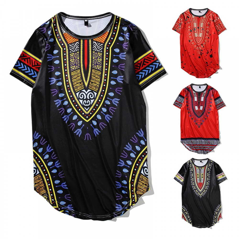 New Men's Flat Tile Large Size Hip-Hop Celebrity Style Long Short Sleeve T-Shirt