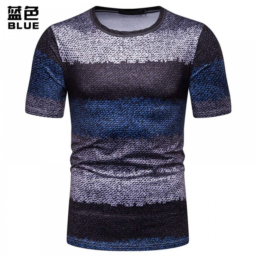 New Summer Men's Short-Sleeved T-Shirt Contrast Striped Slim Casual T-Shirt