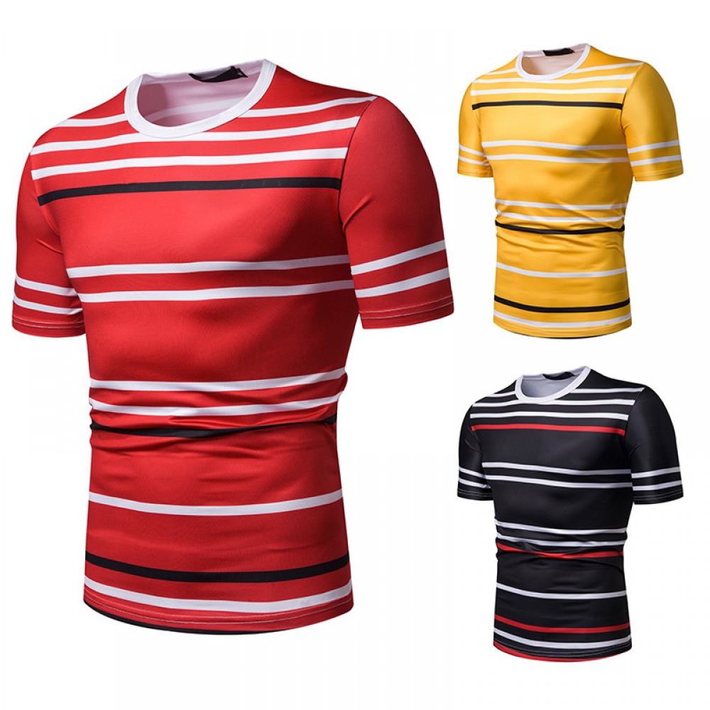 Summer Men's Short-Sleeved T-Shirt Contrast Striped Slim Casual T-Shirt