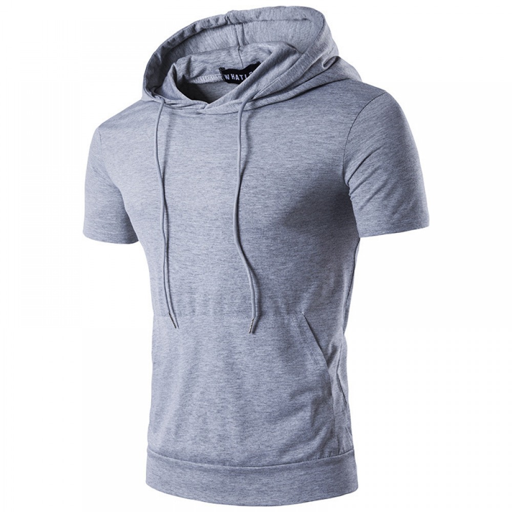 Summer Solid Color Cotton Short-Sleeved Casual Trendy Men's Hooded T-Shirt