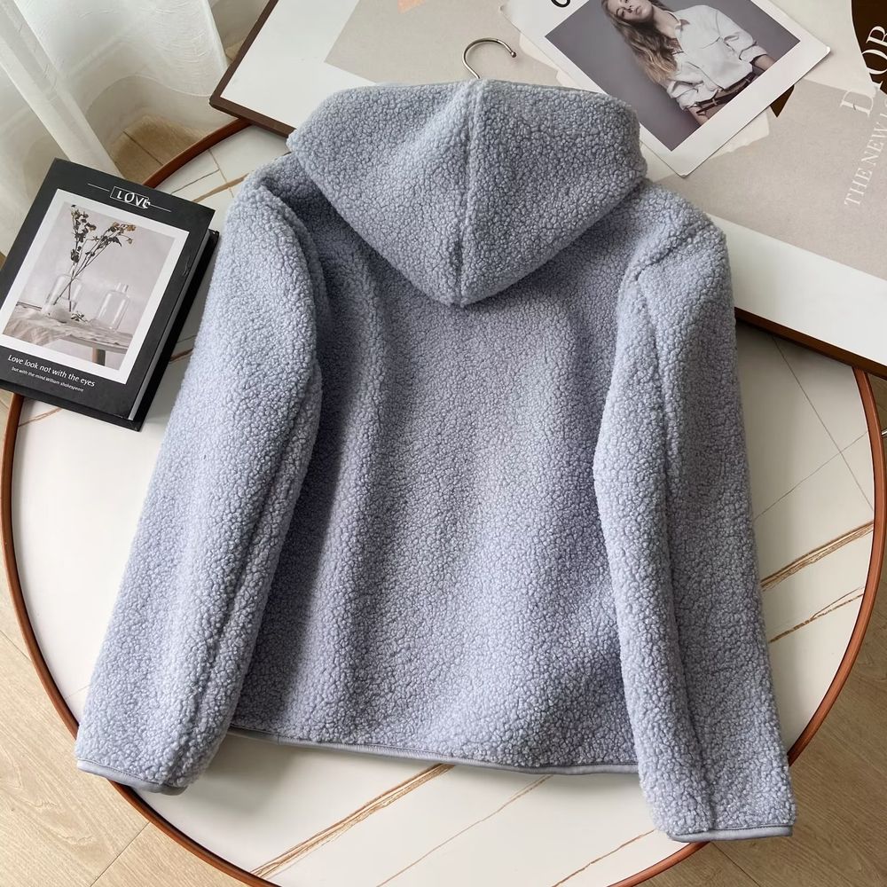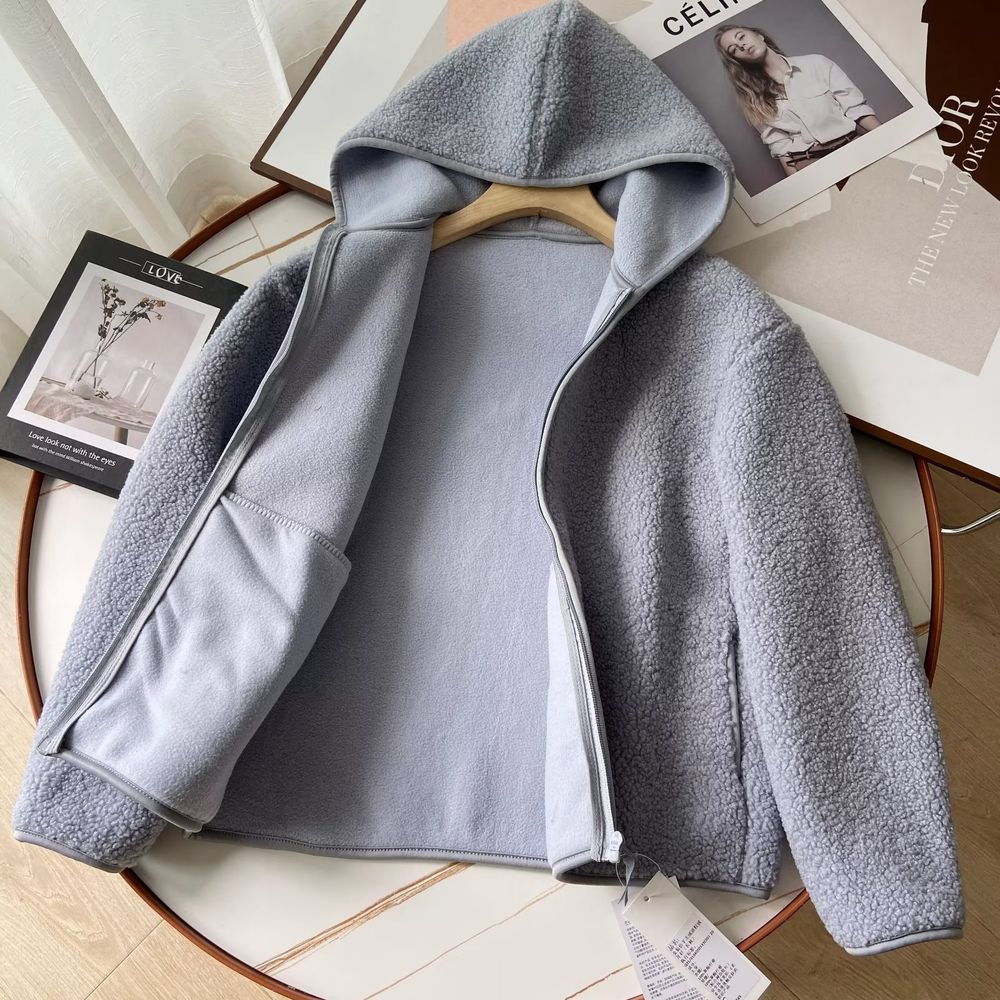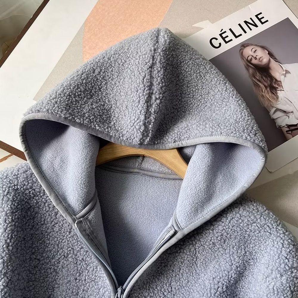 Women's Fleece Hooded Jacket Long-Sleeved Warm Zipper Cardigan