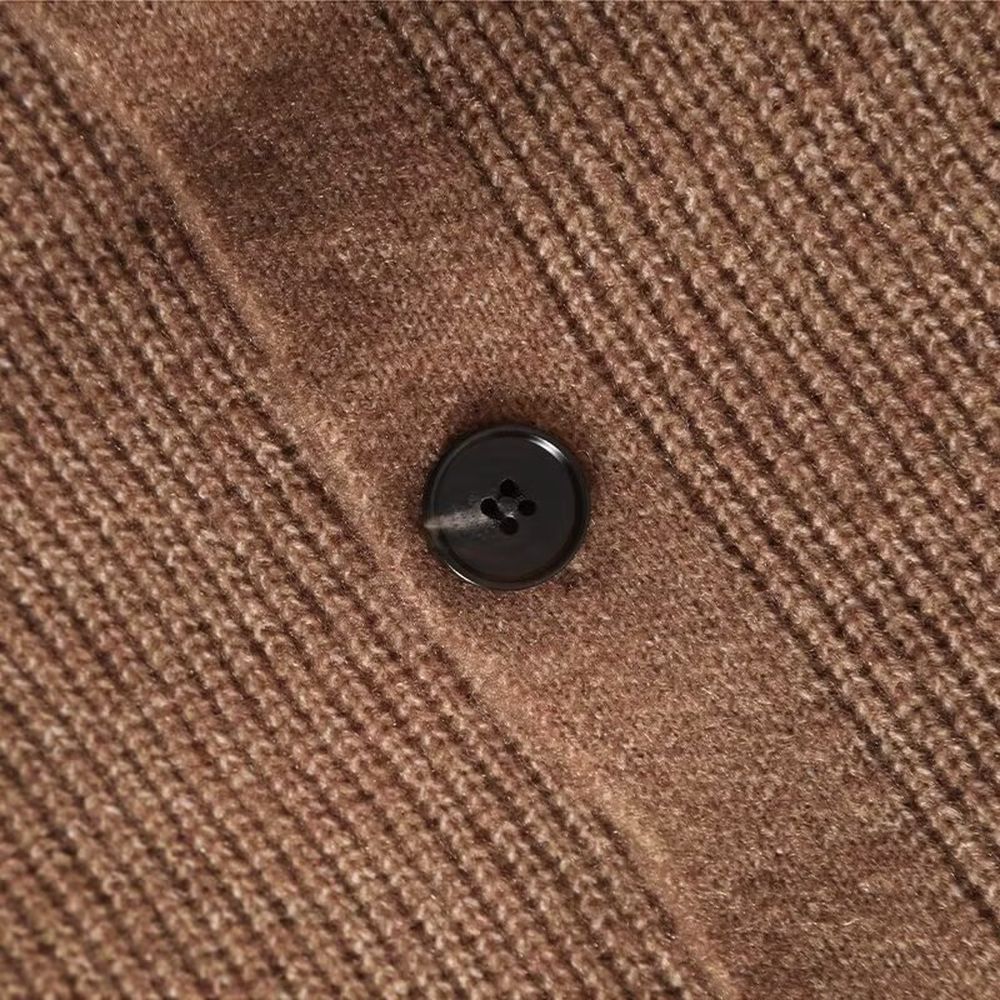 Brown Sweater Knitted Cardigan Long Sleeve Soft Jacket Top for Women