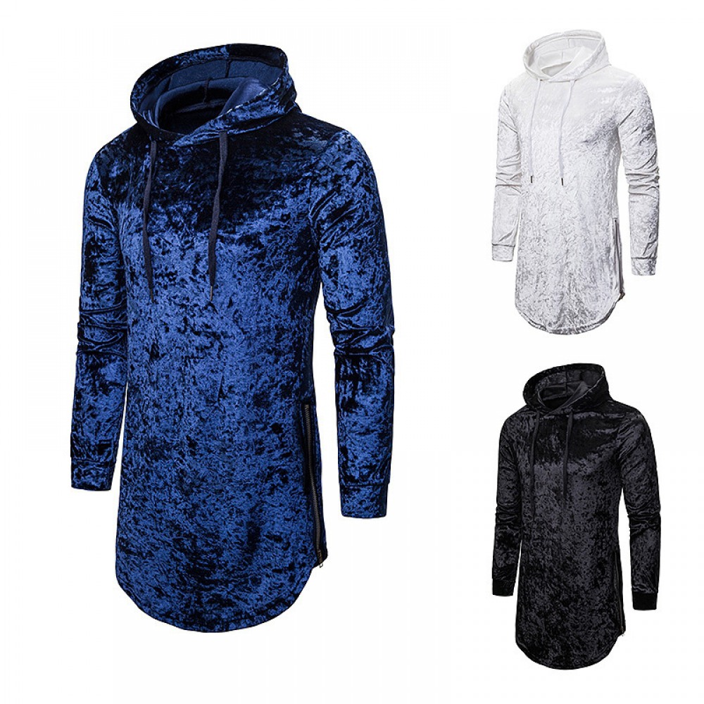 New Men's Diamond Velvet Fashion Personality Street Style Hooded T-Shirt