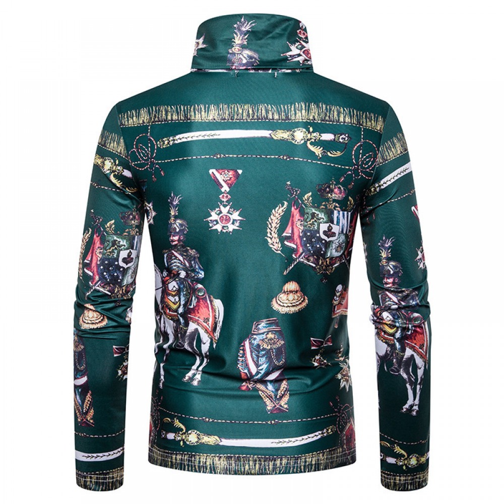 New Men's Large Size 3D Classical Green Pattern Printing High Neck Long Sleeve T-Shirt Bottoming Shirt