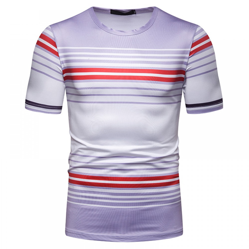 New Summer Men's Short-Sleeved T-Shirt Contrast Striped Slim Casual T-Shirt