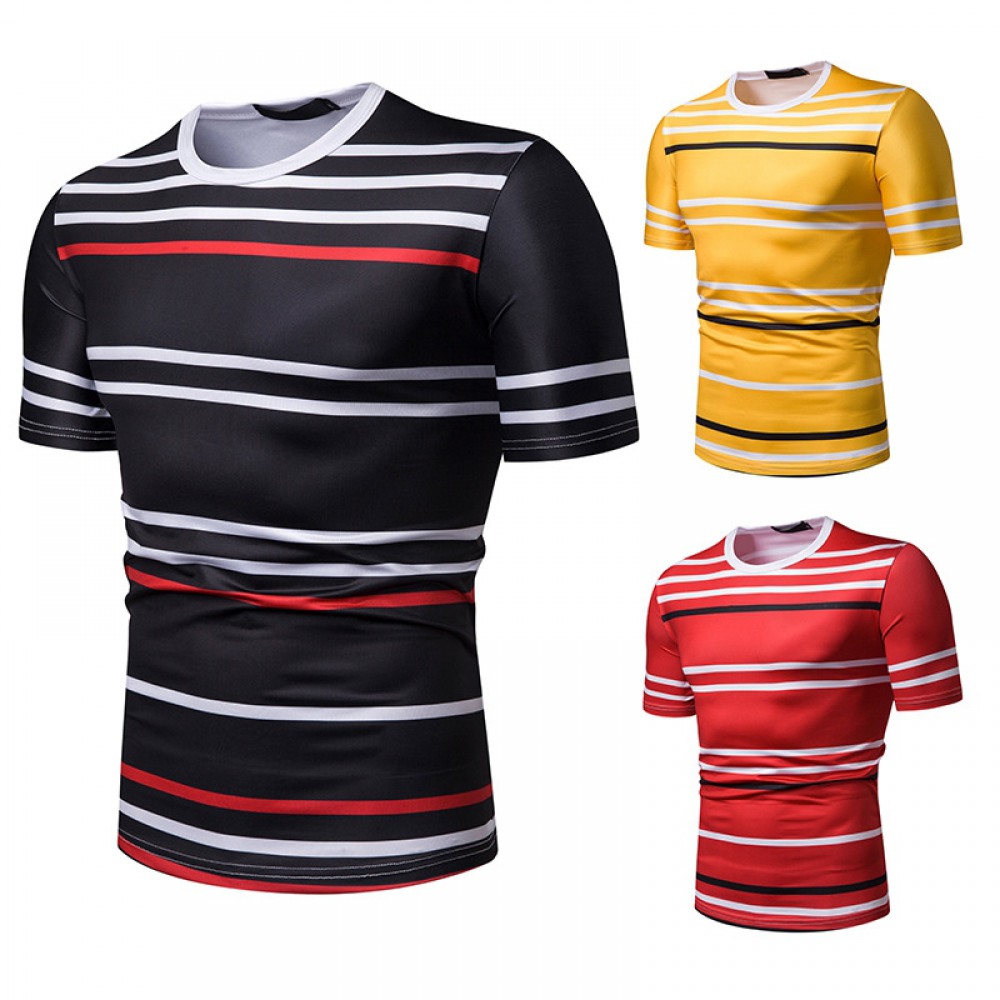 New Summer Men's Short-Sleeved T-Shirt Contrast Striped Slim Casual T-Shirt