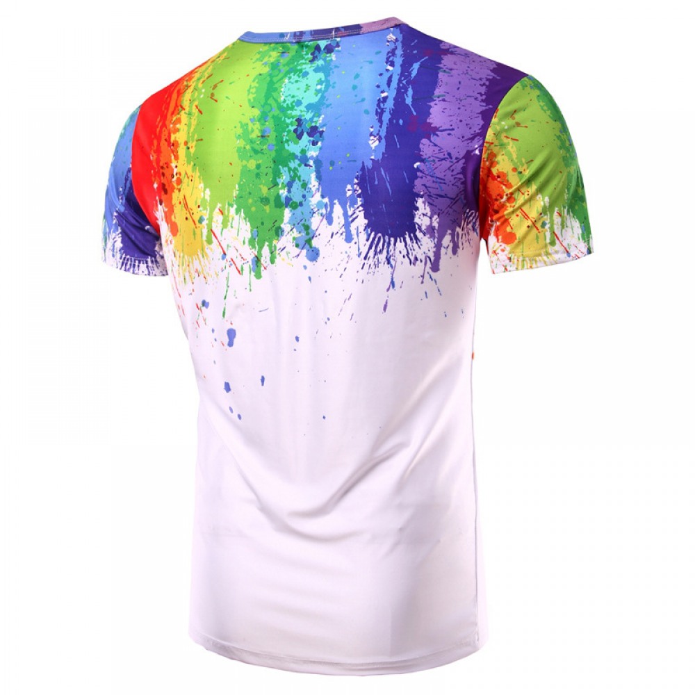 Summer New Style Splash Paint Ink 3D Printing Men's Rainbow Round Neck Short Sleeve T-Shirt