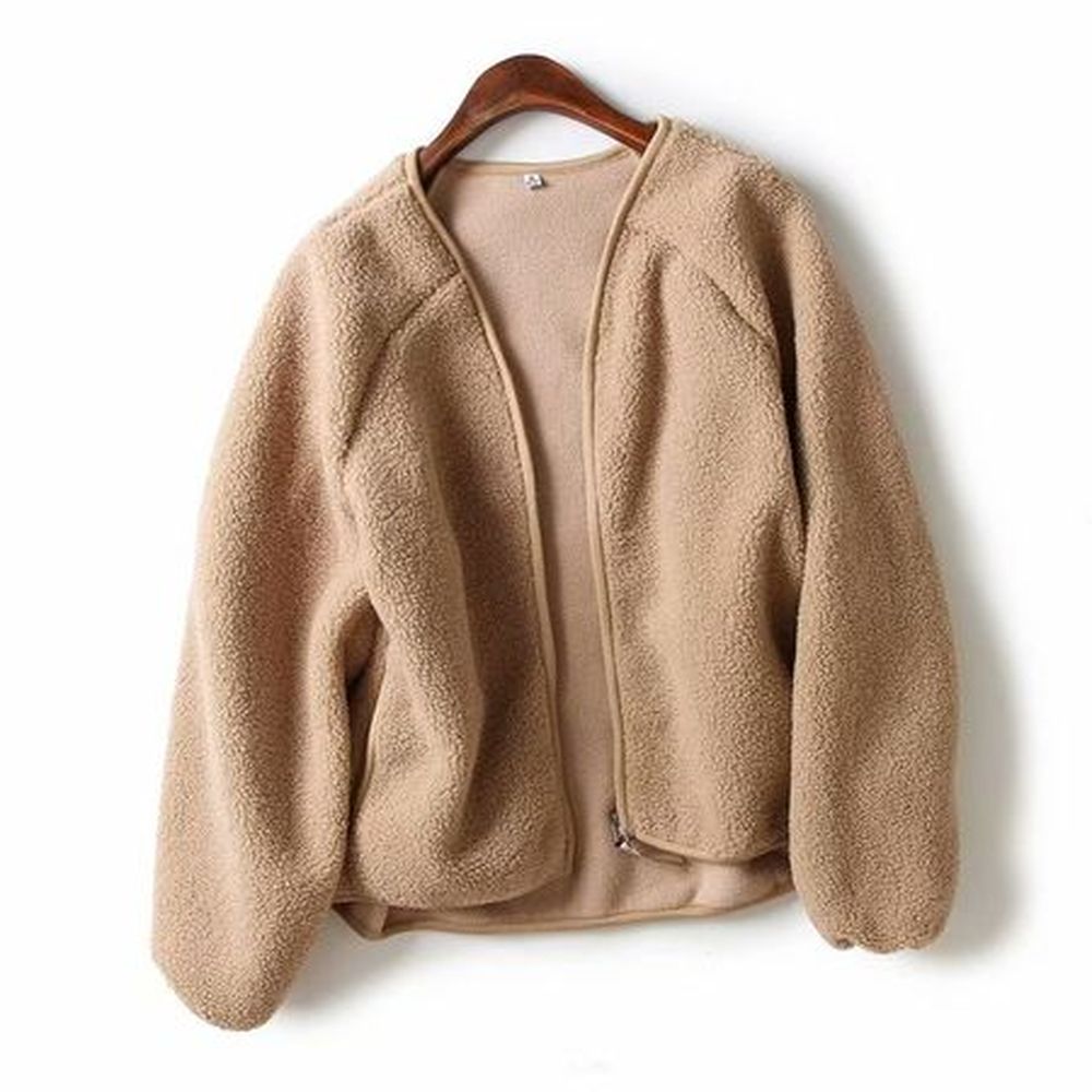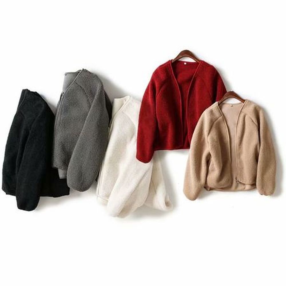Women's Winter Fleece Zipper V-Neck Cardigan Top